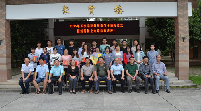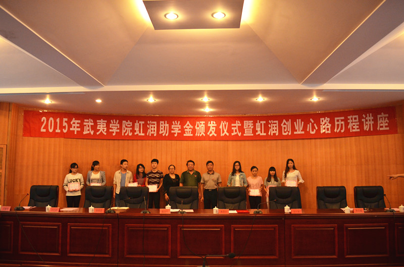 姚進(jìn)生、林善平等與會領(lǐng)導(dǎo)為獲得虹潤助學(xué)金的同學(xué)頒發(fā)了證書。林善平用自己的創(chuàng)業(yè)歷程告訴同學(xué)們要尊重自我,在暫時(shí)的逆境中砥礪品格,磨練意志,用自己的努力不斷增長知識和才干,在以后的人生歷程中選擇更輝煌的道路。