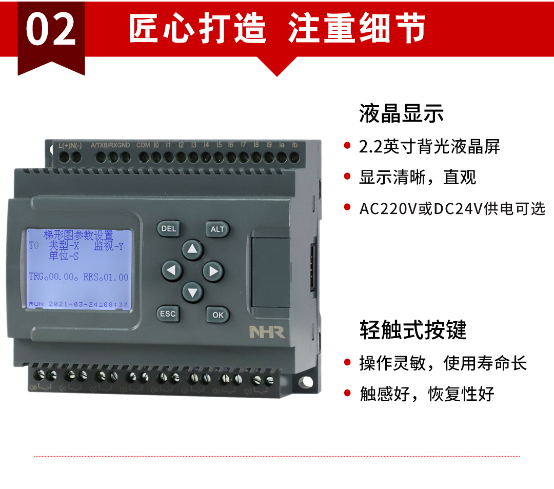 NHR-PR20系列簡易PLC控制器是一款結(jié)構(gòu)緊湊功能強大的控制器,集繼電器、定時器、計數(shù)器、日歷、時間開關(guān) 等功能于一體,可用于小規(guī)模應(yīng)用自動化系統(tǒng)。