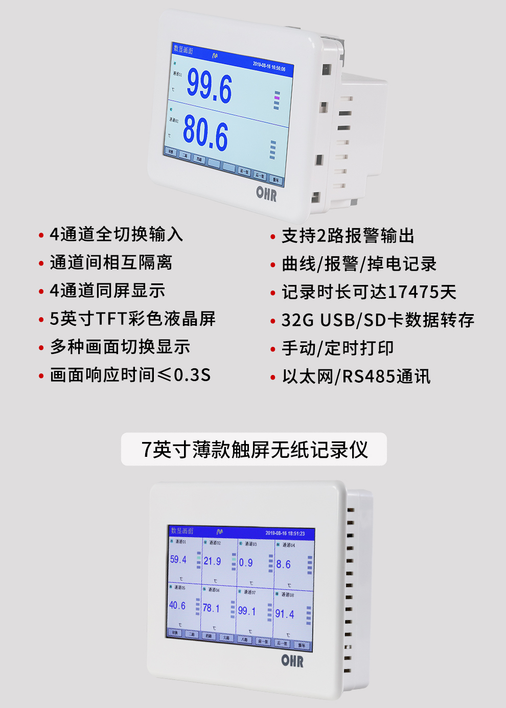 OHR-T系列觸摸超薄無紙記錄儀
