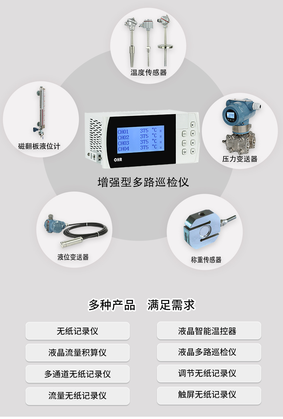 OHR-G702系列增強(qiáng)型液晶多回路測量顯示控制儀針對現(xiàn)場溫度、壓力、液位、速度等各種信號進(jìn)行采集、顯示、控制、遠(yuǎn)傳、通訊、打印等處理