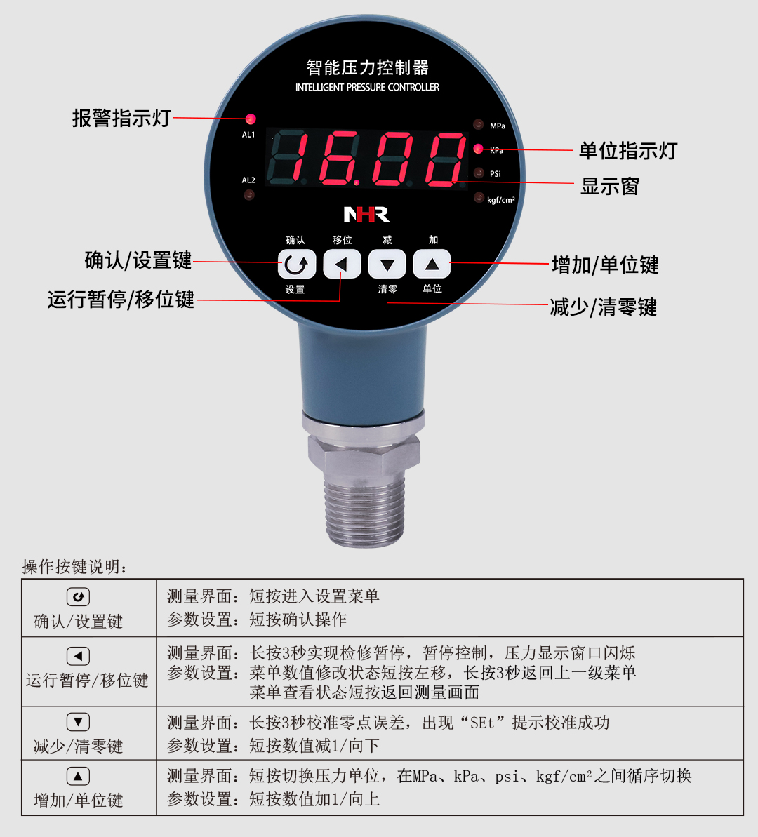 NHR-DP20系列智能壓力控制器是集壓力測(cè)量,顯示,輸出,控制于一體的智能數(shù)顯壓力測(cè)控產(chǎn)品。廣泛應(yīng)用于水電 ,自來(lái)水,石油,化工,機(jī)械,液壓等行業(yè),對(duì)流體介質(zhì)的壓力進(jìn)行現(xiàn)場(chǎng)測(cè)量顯示和控制。