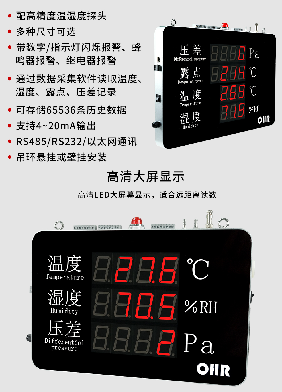 OHR-WS56/WS57系列大屏壓差溫濕度記錄儀